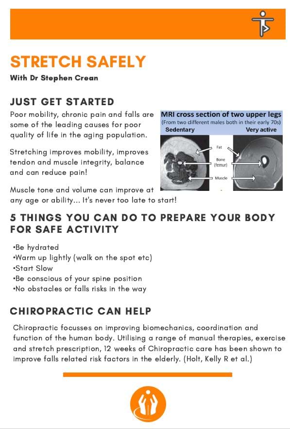 Our website www.hobartchiropractic.com.au has comprehensive information. If you click on the youtube icon at the bottom of our home page you will find lots of helpful videos on stretching to get you ready.