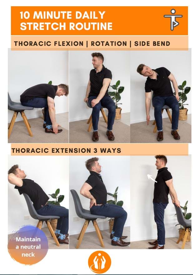 Neck rotation: Sitting down, keep shoulders still against a chair turn your head all the way to left and then repeat on right. How far did you get? Was it comfortable?
